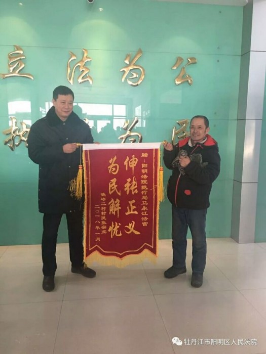 五年来,执行法官一次次地奔波,不分酷暑严寒地辛劳,老张都看在眼里,记在心里。这笔钱拿回来的第一时间,老张就来到了阳明区法院,为执行法官,郑重地送上了这面锦旗。 5年坎坷执行路 14万欠款一朝归还腊月十五,寒风凛冽,然而心里热腾腾的老张并不觉得冷,他冒着严寒大老远赶到阳明区人民法院,就是为了给执行法官送上一面锦旗,他被人拖欠十年的欠款,终于在这个春节前,被执行法官全部执行回来了。
