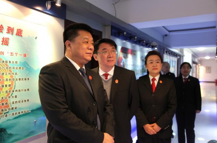 3月20日,市中级法院党组成员、市纪委派驻市中级法院纪检组组长刘振刚,市中级法院监察室负责人谢永魁到阳明区法院参观文化建设。阳明区法院党组书记、院长徐常禄,党组成员、副院长王志琨、政工科长郭玉荣、执行警务局局长王伟东及监察室主任张亚坤陪同参观。