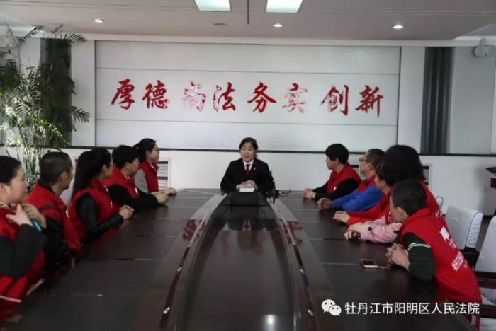 3月26日下午,二十余名来自牡丹江市“爱心帮”志愿者协会的志愿者们走进阳明区法院,参加我院第27次公众开放日活动,他们当中有不惑之年的大哥大姐,也有舞勺之年的学龄少年,大家都是第一次来到法院,对法院之旅显得既兴奋又有些紧张,不论大人还是孩子,都怀揣着一样的好奇。大家首先参观了我院的尊严之厅、辉煌之窗、文化建设长廊和院史展览馆,法院如此丰富的文化建设是志愿者们未曾想到的,大家不禁感叹道,“不走进法院真不知道,原来法院不仅仅是审判的地方,文化建设也这么用心!” 在第四公判庭,讲解员向大家介绍了现代化科技法庭建设及庭审组成和流程,庭审直播在大家心里留下了司法公开、透明的深刻印象。志愿者们纷纷坐上审判席,敲响法槌,大声宣布“现在开庭”,过足了“法官瘾”。