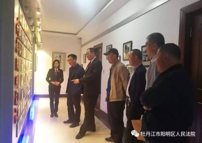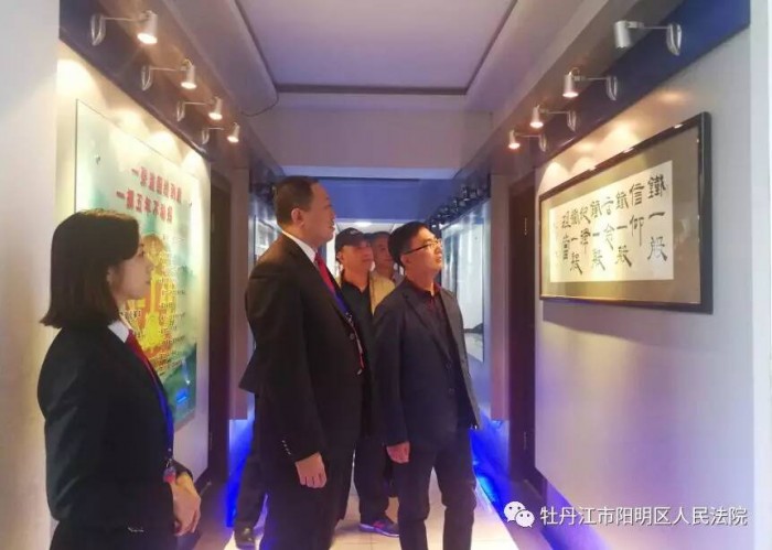 为进一步发挥法院公众开放日的社会辐射作用,树立法院新形象,5月10日下午,铁岭镇镇长朱洪彦一行来到阳明区法院参观文化建设,在院党组成员、副院长张海波的陪同下,朱镇长一行参观了我院尊严之厅、文化建设长廊和院史展览馆。