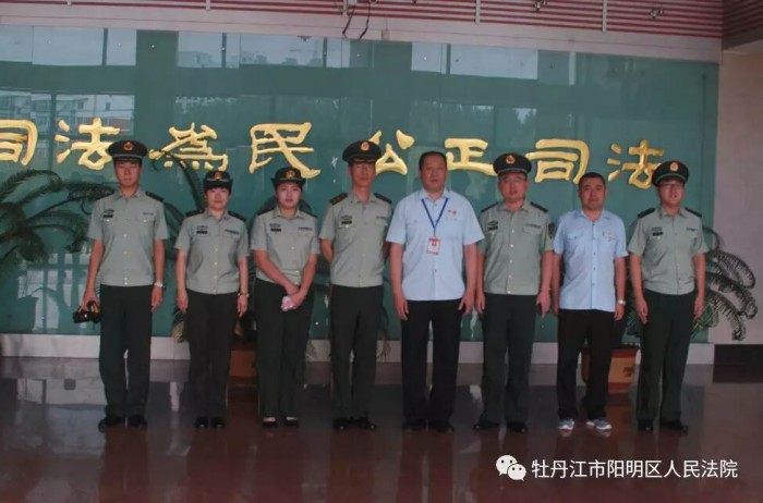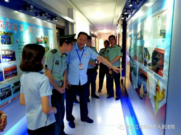 7月6日上午,来自牡丹江市边防支队的边防武警军官走进阳明区法院,旁听了一起确认合同效力纠纷的庭审并参观文化建设。院党组成员、副院长张海波陪同参观。