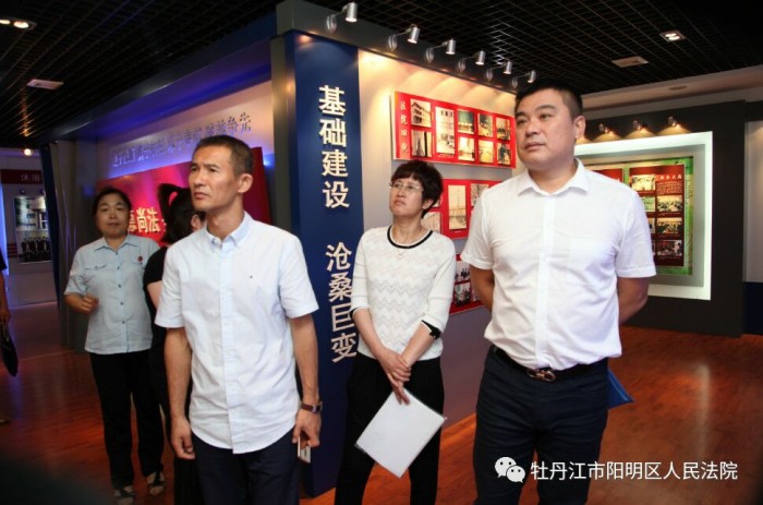 “沧桑巨变、硕果满枝”——院史展览馆来到院史展览馆,一张张照片和陈列的展览物品带领嘉宾们重走了阳明区法院的沧桑发展之路,共同聆听《阳明法院之歌》,共同见证“厚德、尚法、务实、创新”的司法理念,嘉宾们纷纷感叹,一路参观下来,感受到了阳明区法院这份有分量的法律情怀,看到了一个有态度、有朝气、有底蕴的奋进集体,现在的法院发展真的令人欣慰不已。