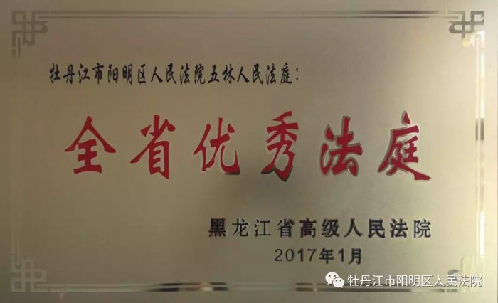 五林法庭成立于1976年,原属于林口县法院,2010年6月,因行政区划调整,归属牡丹江阳明区法院。五林法庭位于阳明区五林镇,管辖五林镇及24个行政村、8个自然屯,辖区面积500平方公里,常住人口52305人。法庭共有干警4人,是全市唯一一个城区法庭。四十余载五林法庭薪火相传,初心不改,秉持公正司法理念,怀揣司法为民情怀,上山下乡、爬坡过坎,从“炕头”到“地头”,群众在哪,法庭就在哪。 五林法庭各项指标连续多年位列全市法院先进行列,2017年年均结案率达100%,调撤率达83.6%,多年来,无一重审改判案件及无理访案件,是老百姓心中名副其实的“口碑法庭”。2016年获“全省优秀法庭”荣誉称号。